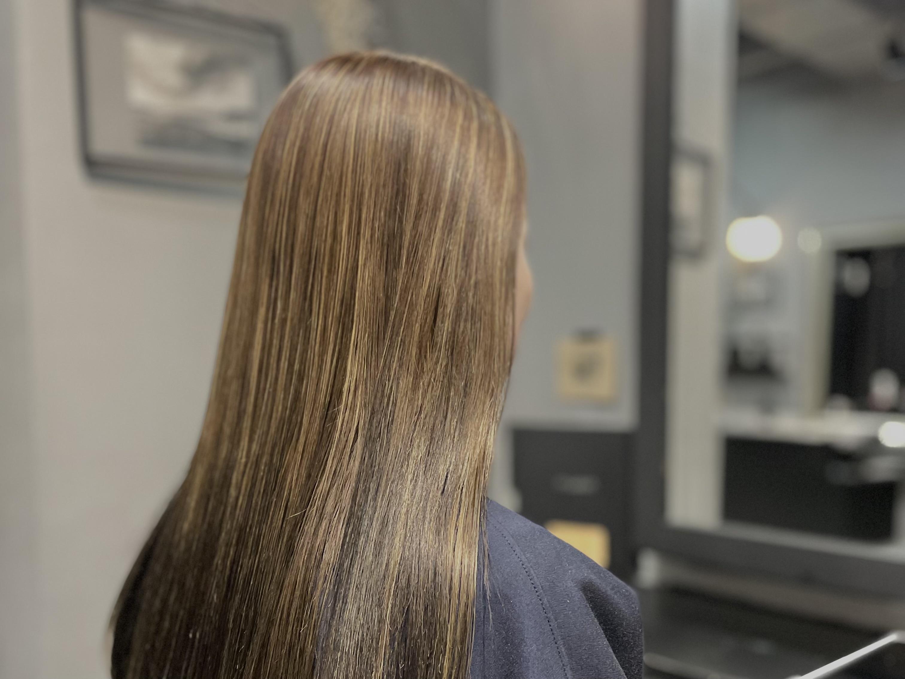 ファイバープレックスケア付 枝毛、切れ毛98.6%削減 ダメージによる髪の悩みを補修で解決するのではなく、ダメージを受けにくい髪へと導くことでサポートする革新的毛髪強化システム コスメストレート+シャンプーブロー込み